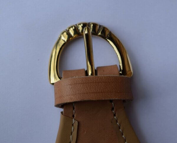 Die Halsung ist doppelt mit umgeschlagenem Leder gefertigt. Die Schweisshalsung aus Leder ist farblich nicht behandelt. Wenn Sie eine dunkle Halsung wollen, behandeln Sie die Halsung mit Öl, z.B. Balistol. Sowohl die Schnalle als auch die Wirbelplatte sind aus massivem Messing gefertigt.